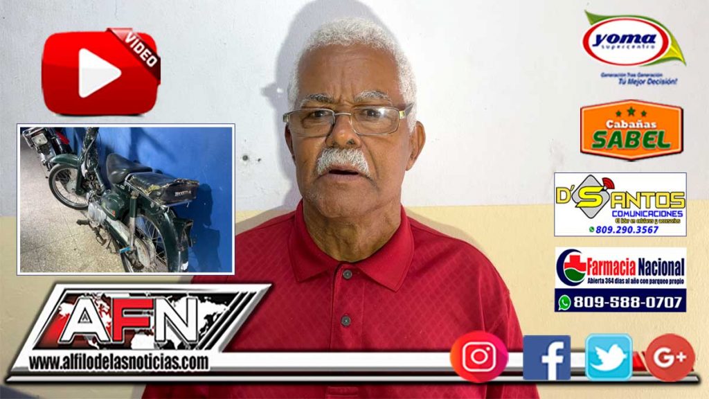SAN FRANCISCO DE MACORÍS. – Agentes policiales recuperaron la motocicleta que le fue sustraída a un adulto mayor en las inmediaciones del ayuntamiento municipal de esta ciudad, tras accidentarse.