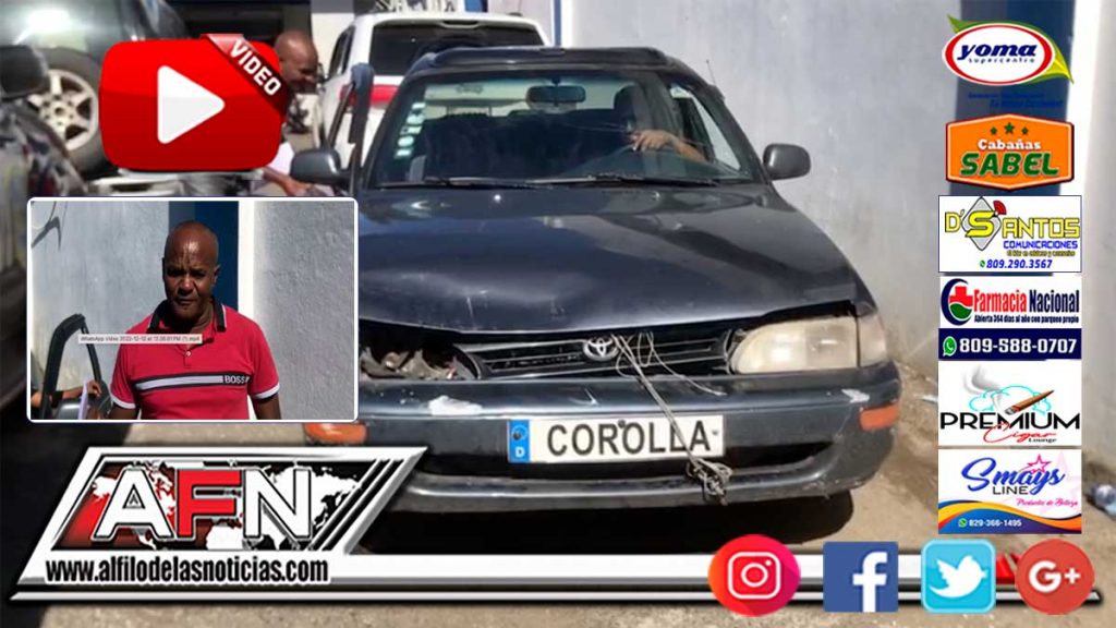 Se trata del carro marca Toyota, modelo Corolla, de color gris, años 1994, el cual se encuentra en el Comando Regional Nordeste de la Policía Nacional, el cual al ser depurado figura con una denuncia por robo interpuesta por su propietario, residente en Puerto Plata.