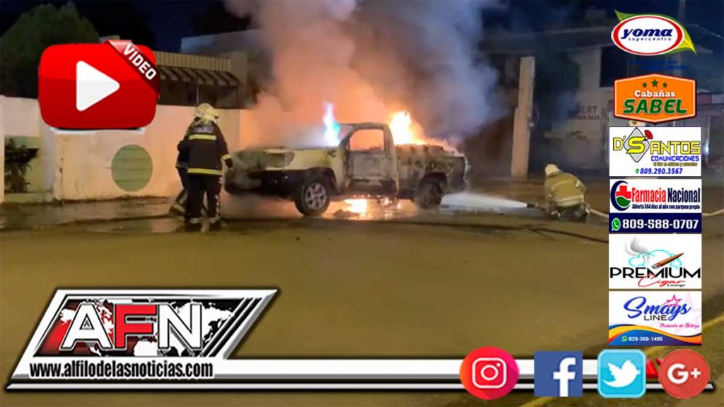 SAN FRANCISCO DE MACORIS.- Una camioneta quedó reducida a cenizas tras incendiarse al presentar problemas con el sistema de gas de la misma.