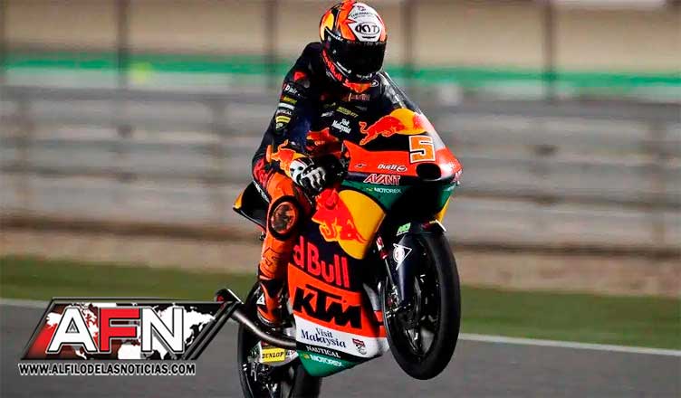 MADRID.- El español Jaume Masiá (KTM) consiguió la victoria en el Gran Premio de Catar de Moto3 en el circuito de Losail después de planificar una estrategia perfecta para la parte final de la carrera frente a los ataques de su propio compañero de equipo y debutante en el mundial, el español Pedro Acosta, con el surafricano Darryn Binder en la tercera posición.