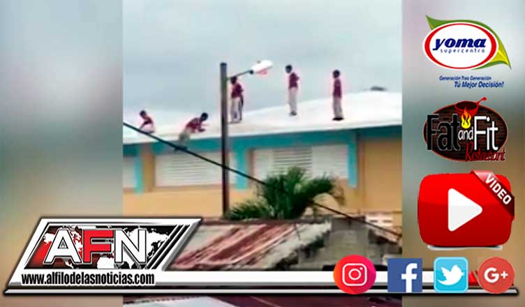 SAN FRANCISCO DE MACORÍS. – En un video que circula en las redes sociales, se puede visualizar a varios estudiantes de una escuela de esta ciudad expuestos a todo tipo de peligro en el techo del centro educativo.