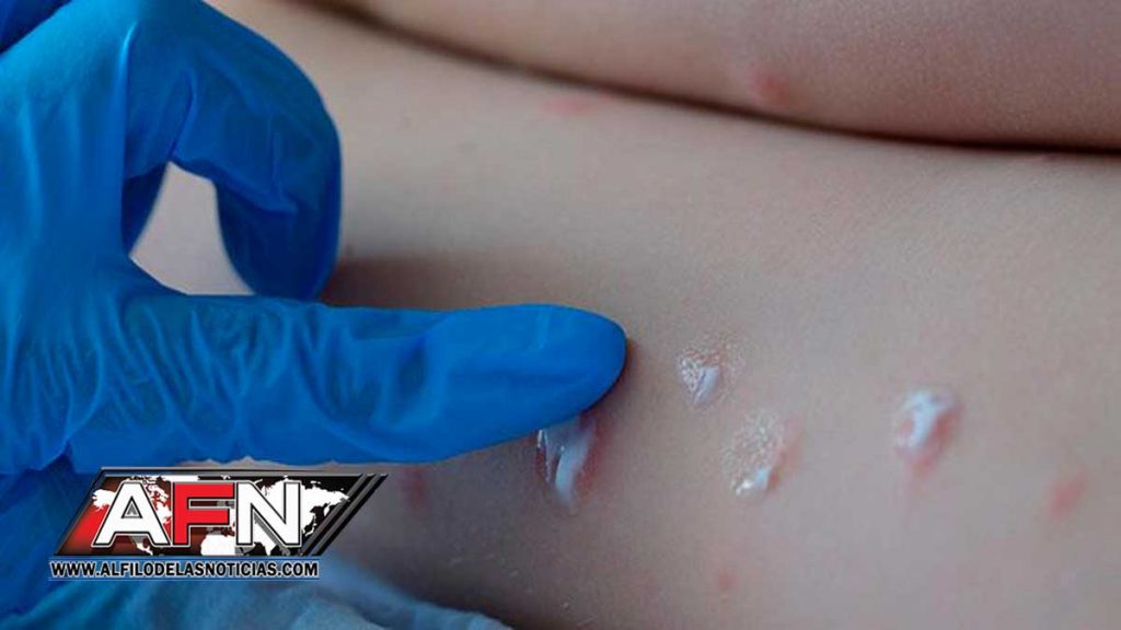 Luego aparecen erupciones (en la cara, las palmas de las manos, las plantas de los pies), lesiones, pústulas y finalmente costras.