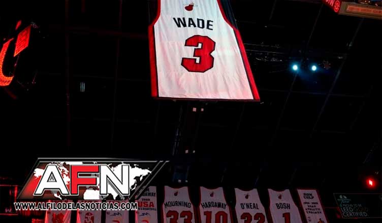FLORIDA.- El dorsal número 3 de Dwyane Wade decora desde la noche de este sábado la parte alta del American Airlines Arena de Miami. El legendario escolta de los Heat vivió, apenas unos meses después de poner fin a su carrera, su ceremonia de homenaje en la que la franquicia retiró su número, celebración a la que asistieron Pat Riley, Erik Spoelstra, sus familiares y algunos ex compañeros, pero en la que Wade quiso acordarse de Kobe Bryant.