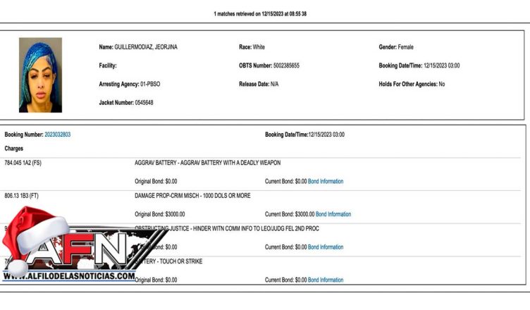 Solo uno de esos cargos tiene una fianza que alcanza los tres mil dólares. En el reporte de la policía la intérprete de »Narcisista» luce una peluca azul y su cara se puede ver hinchada.